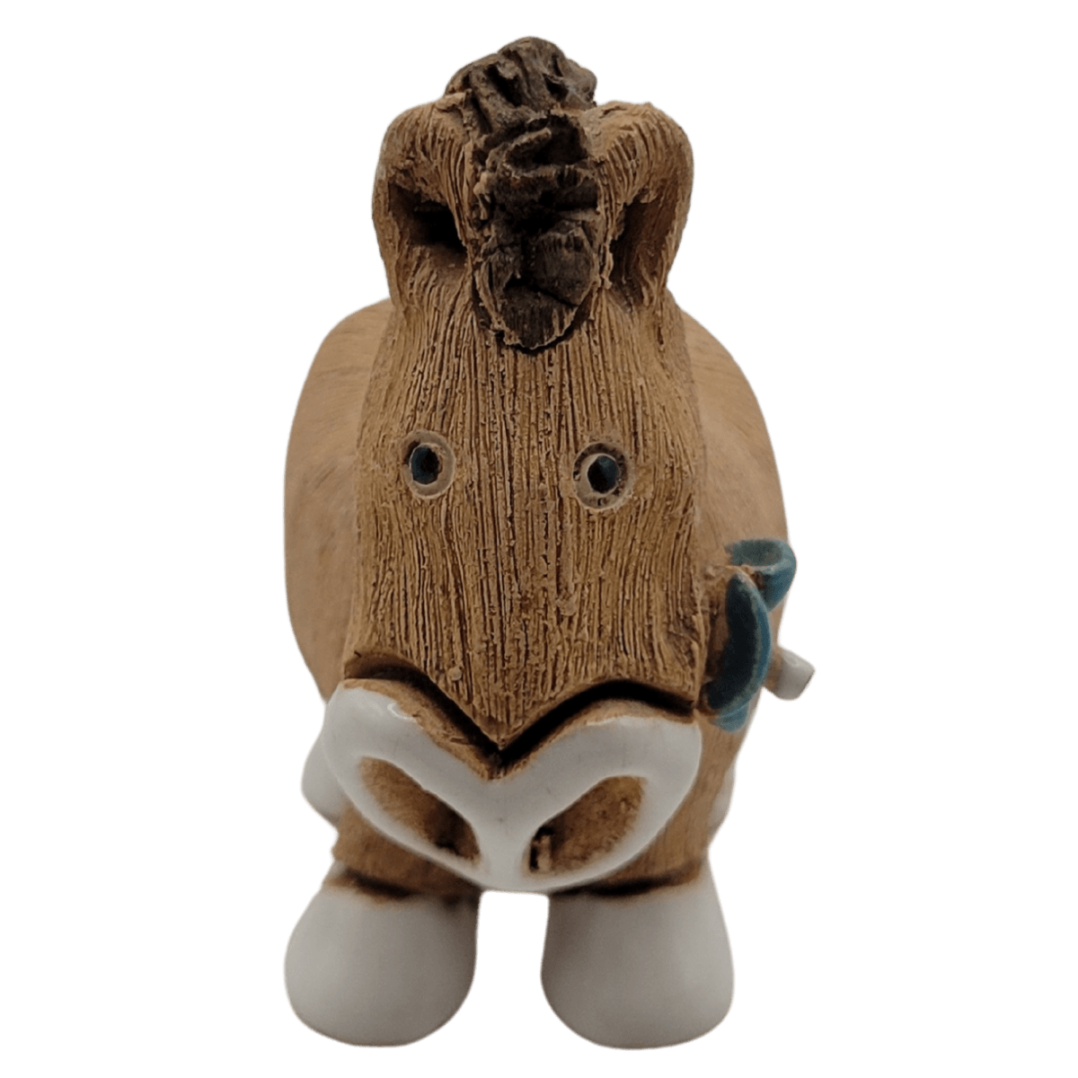- Sculptural Character: The horse’s rounded body, incised texture, and minimal facial detailing create a piece that feels intentional and art-forward rather than ornamental.